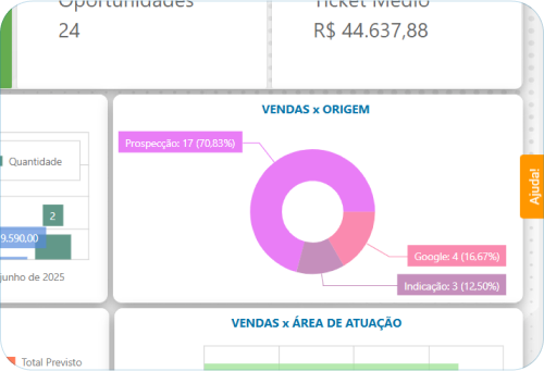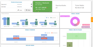 Indicadores diversos: funil, propostas, produtos, equipe e mais
